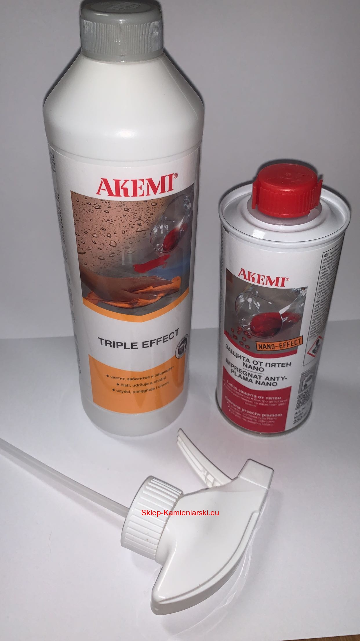 AKEMI Triple Effect nadaje się do codziennego mycia, opieki i do ochrony nasiąkliwych, szlifowanych i polerowanych powierzchni kamienia naturalnego i sztucznego typu: granit, marmur, lastryko. terazzo, w postaci parapetów, blatów i innych małych powierzchni.